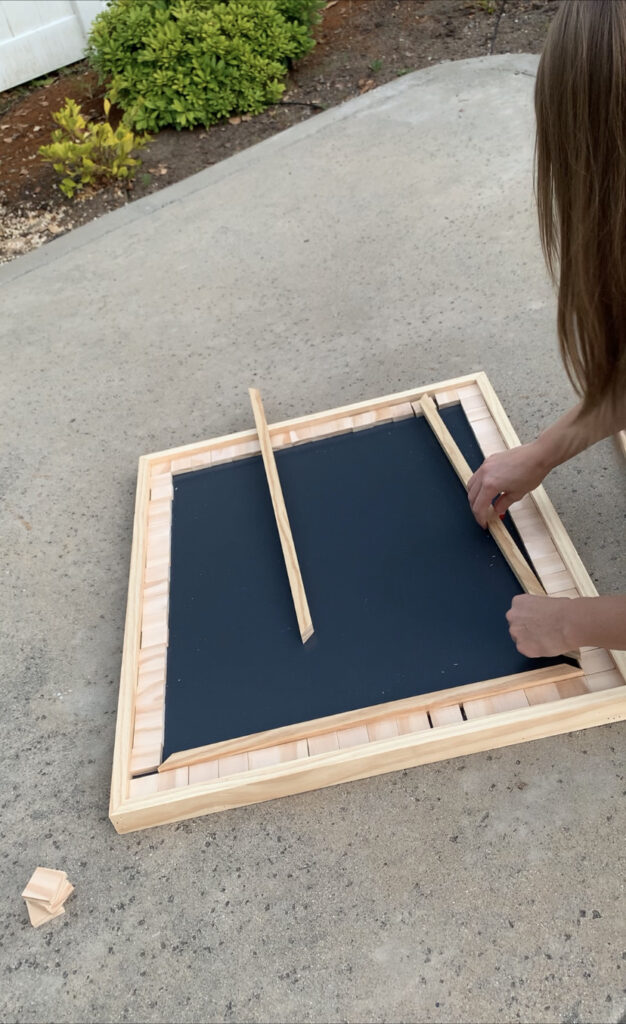 I moved the wood squares around a little to ensure the gaps between them were as even as possible.
