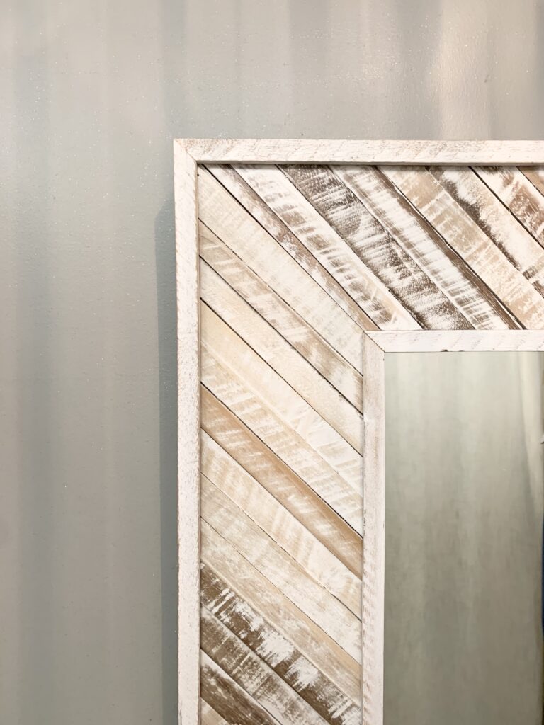 The original inspiration for this mirror came from a mirror I saw about a year prior in a fitting room in a boutique in Carlsbad, CA. I took a picture of it back then and knew I’d like to recreate something like it but put my own twist on it. The bathroom was the perfect opportunity!