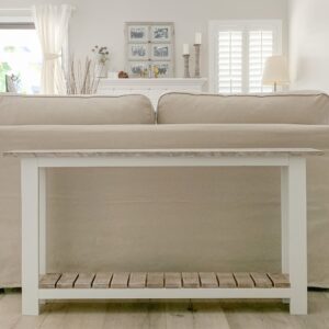 I had finally found the perfect table for our hallway on Craiglist: it was the perfect size, had the cutest scalloped details and cost next to nothing! The only problem was the paint. It looked a little tired and had a few chips here and there and needed a refresh. Thankfully, there is a quick and easy way to fix that. In fact, it’s so quick and easy that I did this on a weeknight after work: spray paint!