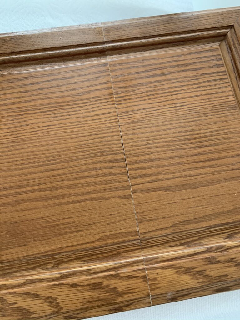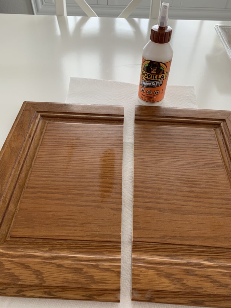 Once the cabinet doors were cut, I wiped them down and decided to use wood glue. I probably would have used screws if this was a cabinet that was going to be used frequently. For this one, I felt that glue would be enough to hold it together!