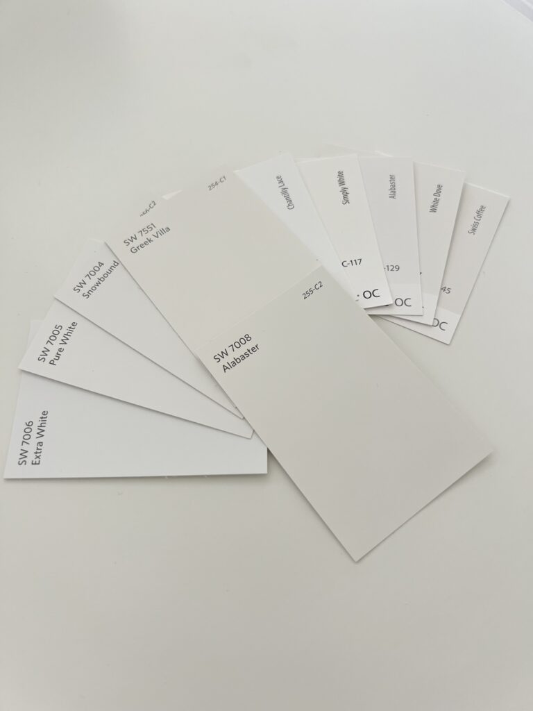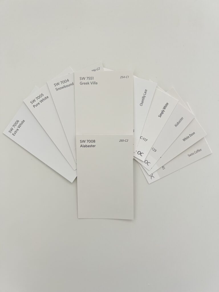 I’ll compare each of these white paint colors directly to Sherwin Williams Alabaster for you next: